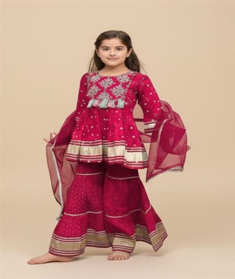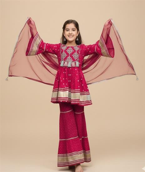 Girl Pom Pom Sharara Set