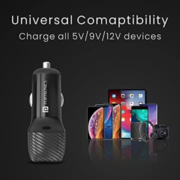 Portronics Car Power 6 with C to C Car Charger with Dual USB Port (PD+QC), Black