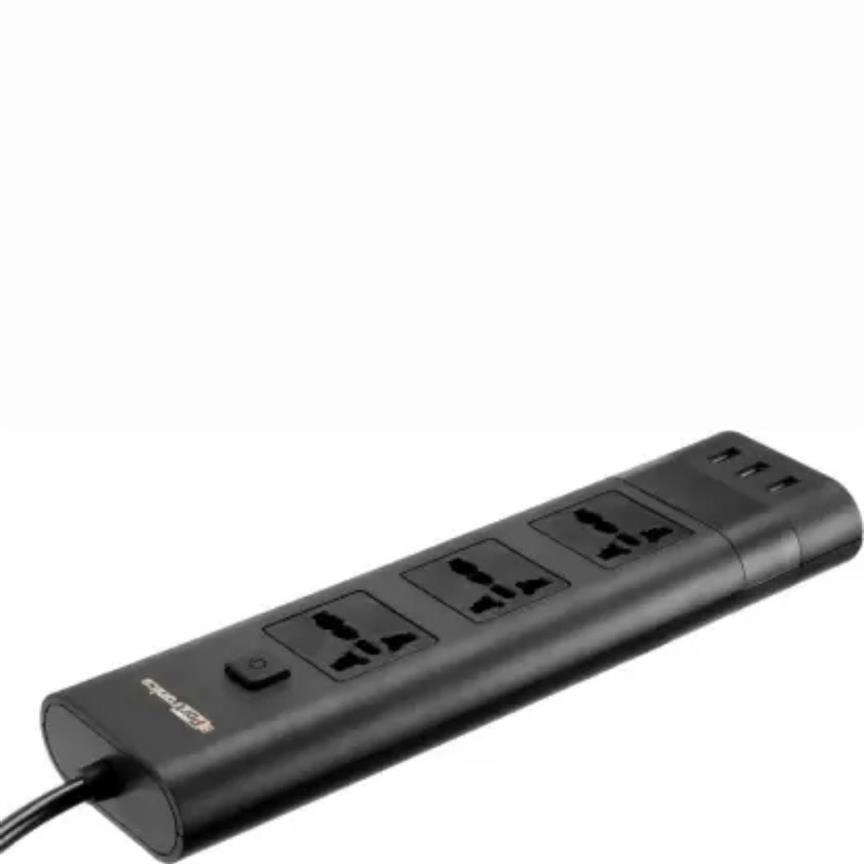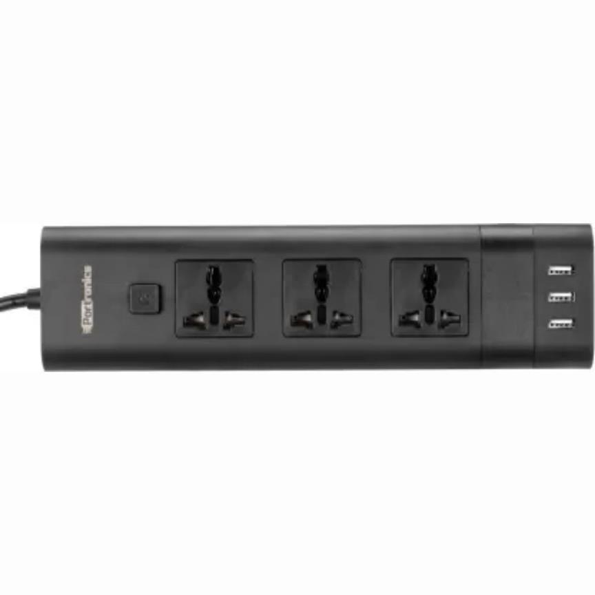 Portronics Power Plate II 2.1A, 3 Ports Socket with 3 USB, Black