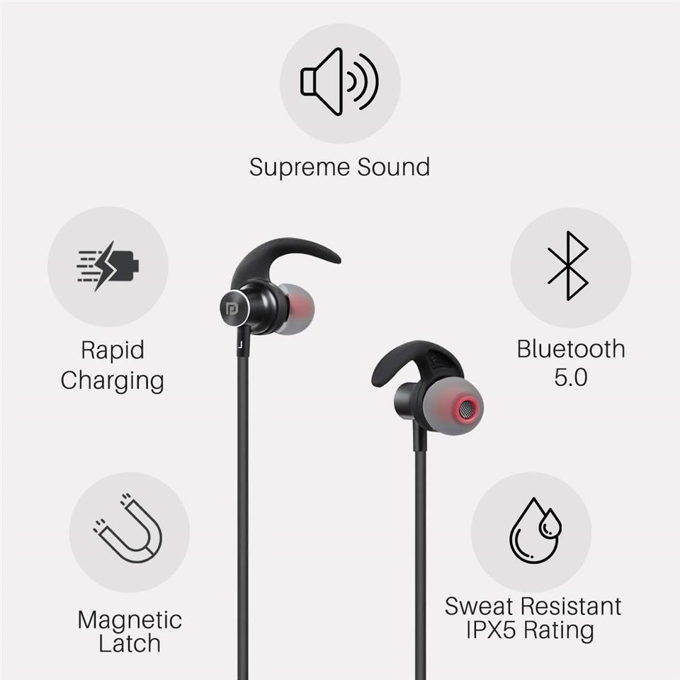 Portronics Harmonics X Wireless Sports Headset with Supreme Sound, Black