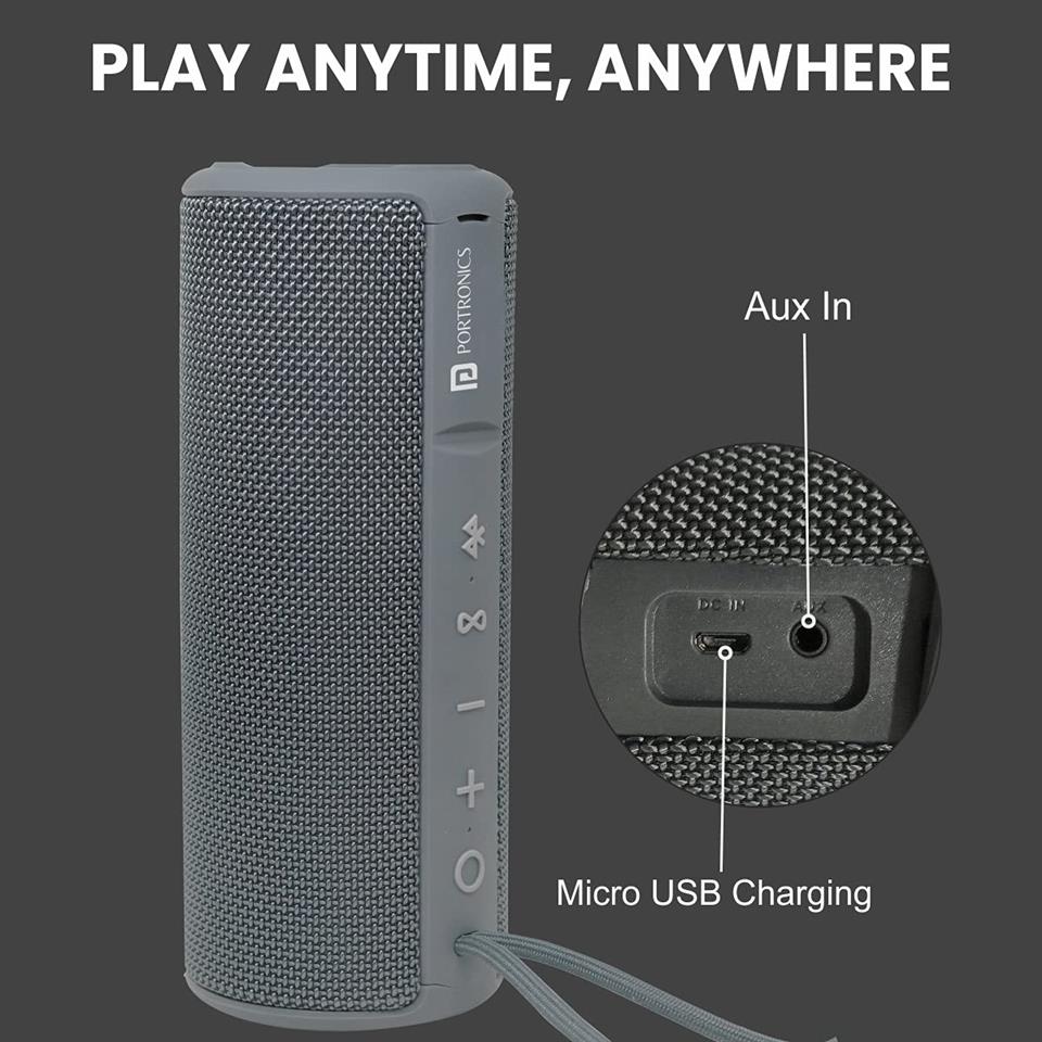 Portronics Breeze Plus Portable 20W BT Speaker with TWS & AUX, Grey