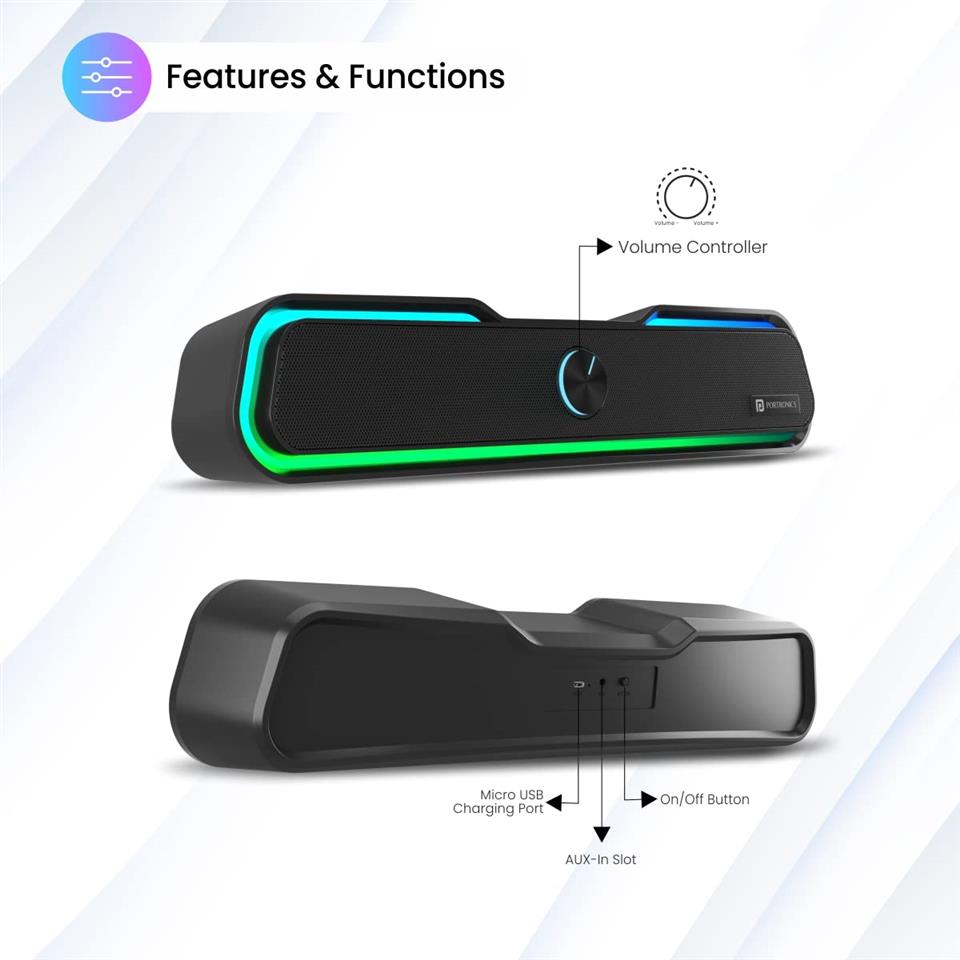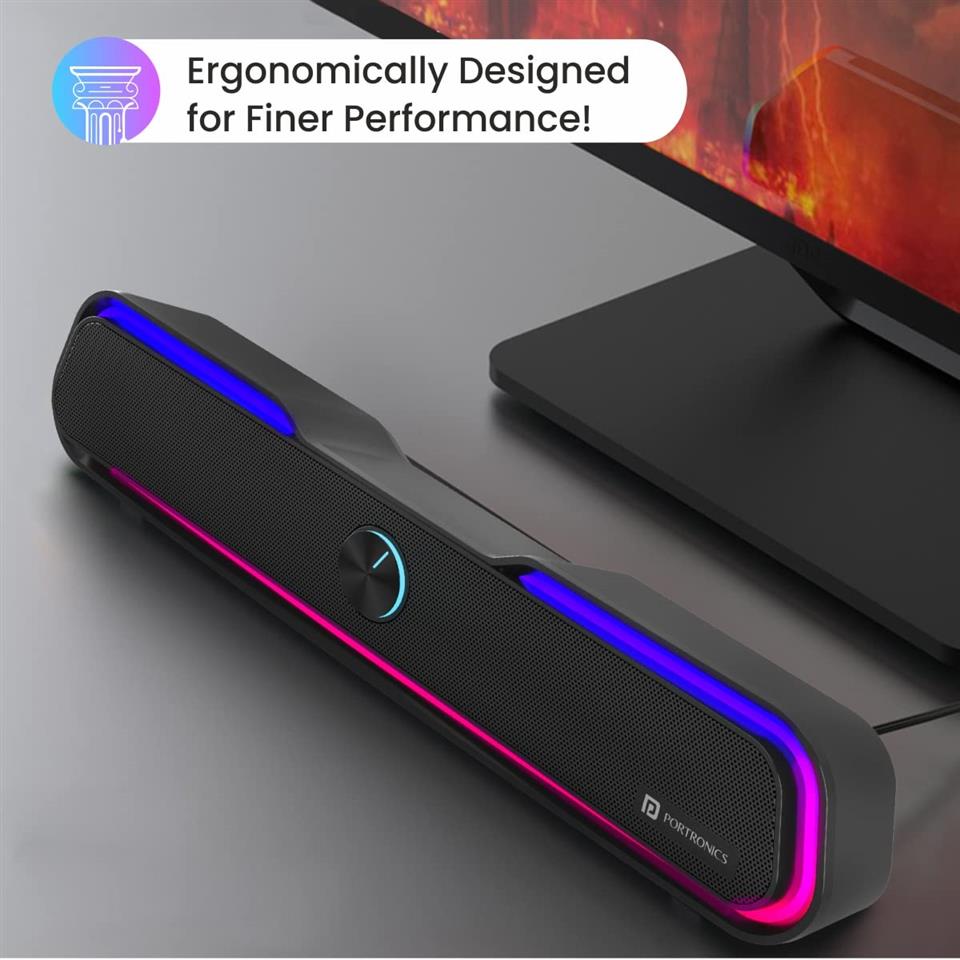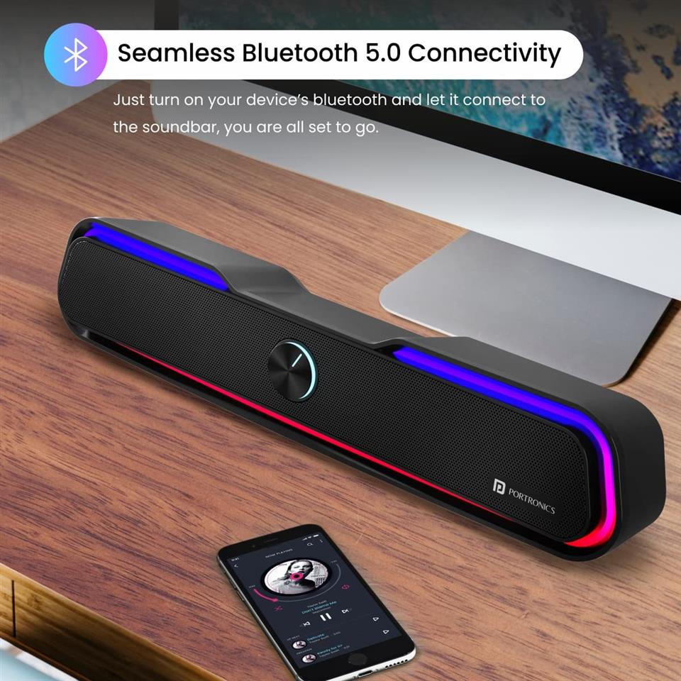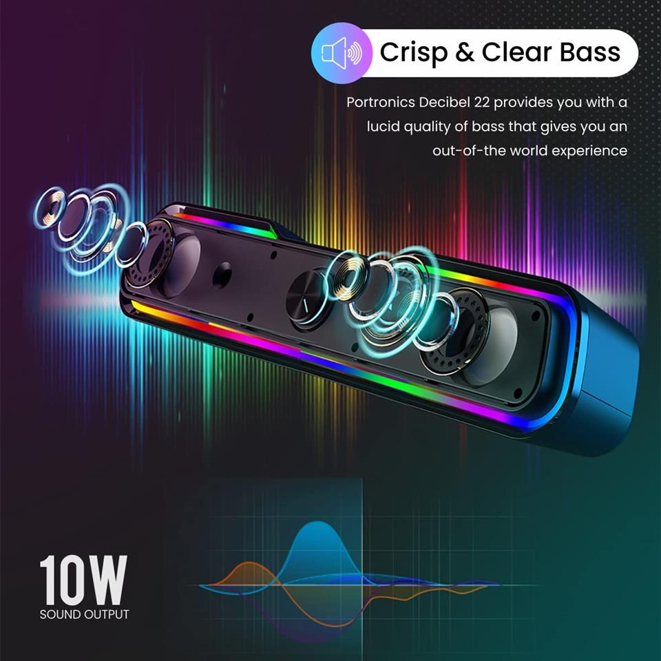 Portronics Decibel 22 Speaker 10 Watt Wireless Soundbar With RGB Light, Black
