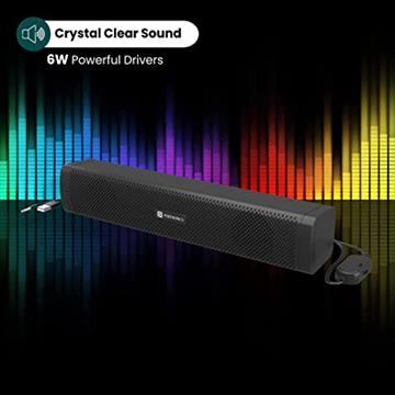 Portronics In Tune 2 Speaker 6W Wired Soundbar for Laptop or Desktop, Black