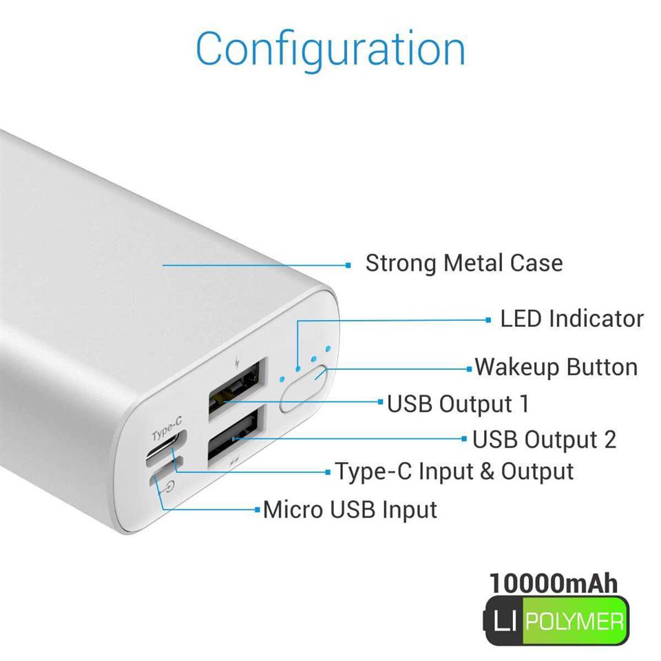 • 10,000mAh Li-POLYMER POWERBANK