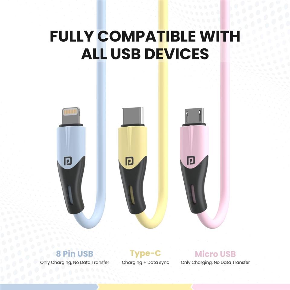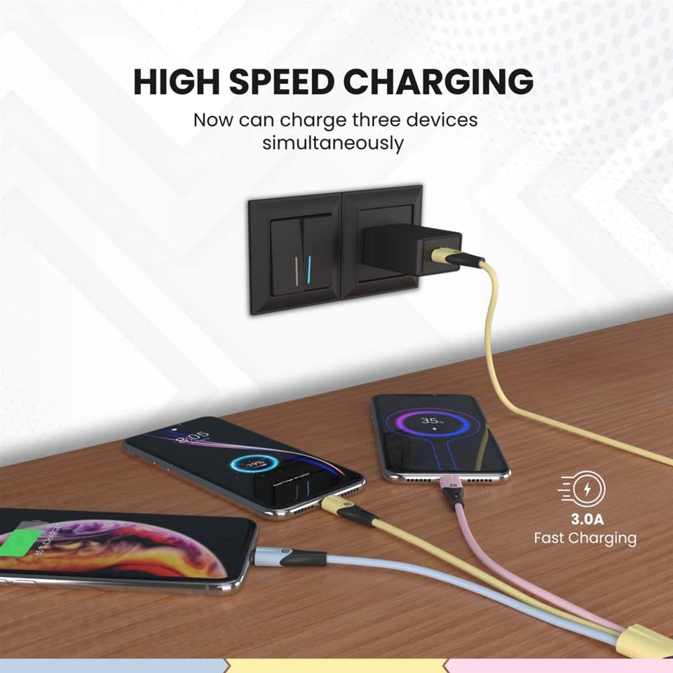 Portronics Konnect 3 Way Nylon 3 IN 1 MultiFunction Micro USB Lightning Type C Cable, Yellow