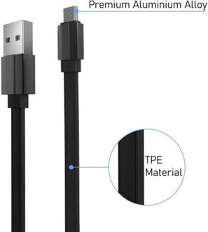 Portronics Konnect Flat Micro 2.4A Flat Micro USB Cable, Black